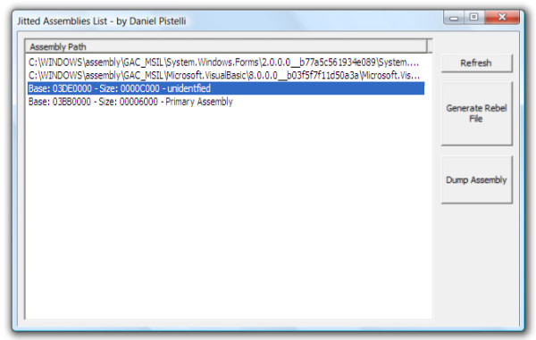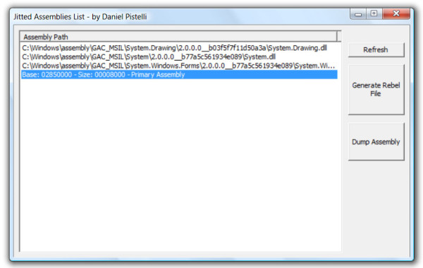 The code ejector I wrote features also a little dumper of the jitted assemblies. This is quite useful, since most times you have to dump the protected assembly. This can also be achieved by a generic .NET unpacker.