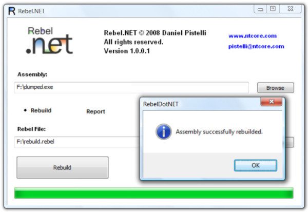 As you can see from the image, the dialog contains a "Generate Rebel File" button. When this button is pressed a rebel report file is requested as input. Basically, one needs to dump (if necessary) the assembly to rebuild first. Then, use the Rebel.NET to create a report file from that assembly. Only the methods should be included in the report file: