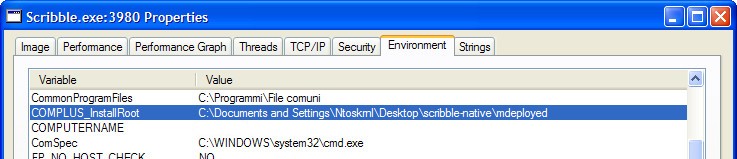 When virtualizing an application there's not only the file system and the registry to consider. Environment variables have to be considered as well. If we look at the environment of the Scribble process with Russinovich's Process Explorer we will notice something: