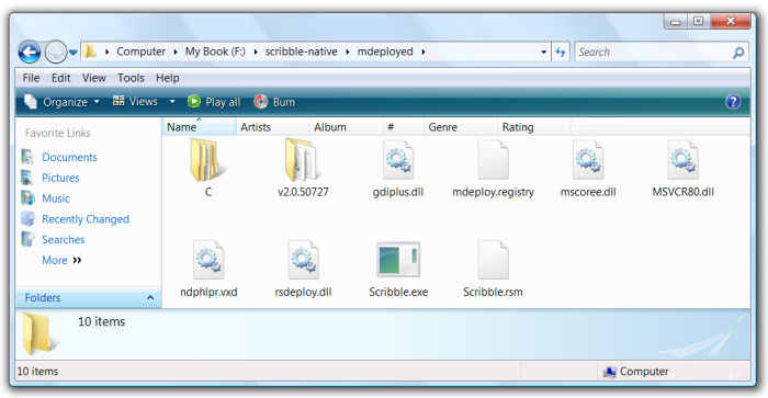 The Salamander Linker's demonstration is called scribble and it's a simple MDI application. Let's look at the application's main directory: