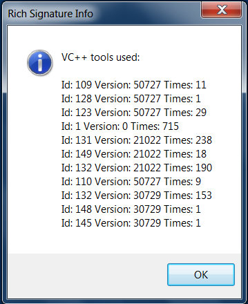 In this article I'm going to try to provide documentation for the undocumented(*) Rich Signature produced by Microsoft compilers. I'm not completely sure when this signature was introduced, I wrongly believed that I had been introduced with Visual Studio 2003, but I was shown that it is present even in VC++ 6 executables. So, I guess this signature has been introduced with that compiler. Information about this topic is non-existent (seems strange, but it's a fact). Thus, most readers probably don't know what I'm talking about. Let's look at the inital bytes of a normal executable compiled with Visual Studio 2005: