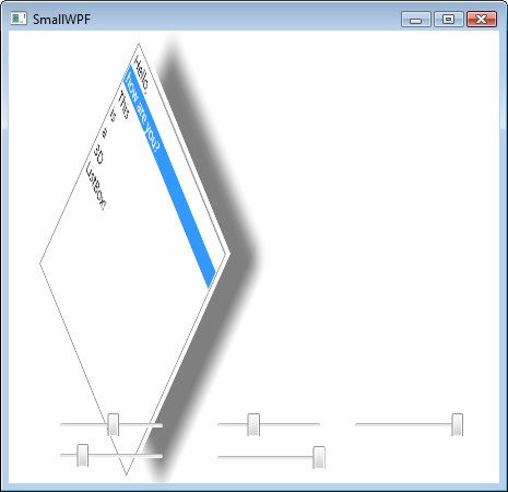 ElementName is the name of the control to bind and Path is the property of the bound control which should be used to fill the value. In this case, the position of MySlider1 fills the AngleX field. I could also bind a control's behavior to C# code. But, of course, this is not the place to discuss every property of this technology. I just hope that this paragraph got you intrigued enough to make you want to read more about it.