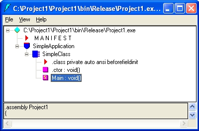 Compiliamolo e otterremo un programma che non fa niente, ma che ci basterà per dare un primo sguardo all'IL. Adesso per disassemblare possiamo sia usare ildasm.exe (fornito dalla MS e situato nella cartella del SDK) oppure usare il nostro solito IDA. Comincio con lo spiegare ildasm dato che probabilmente è quello per la maggior parte di voi meno familiare. Apriamo il prog compilato con ildasm e troveremo una cosa di questo genere: